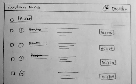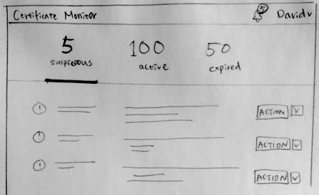 - Each row will have domain, issue authority, issue date and actions users can take. The list will also provide the reason why it's suspicious.(for example, maybe the CA issued malicious certificate before)